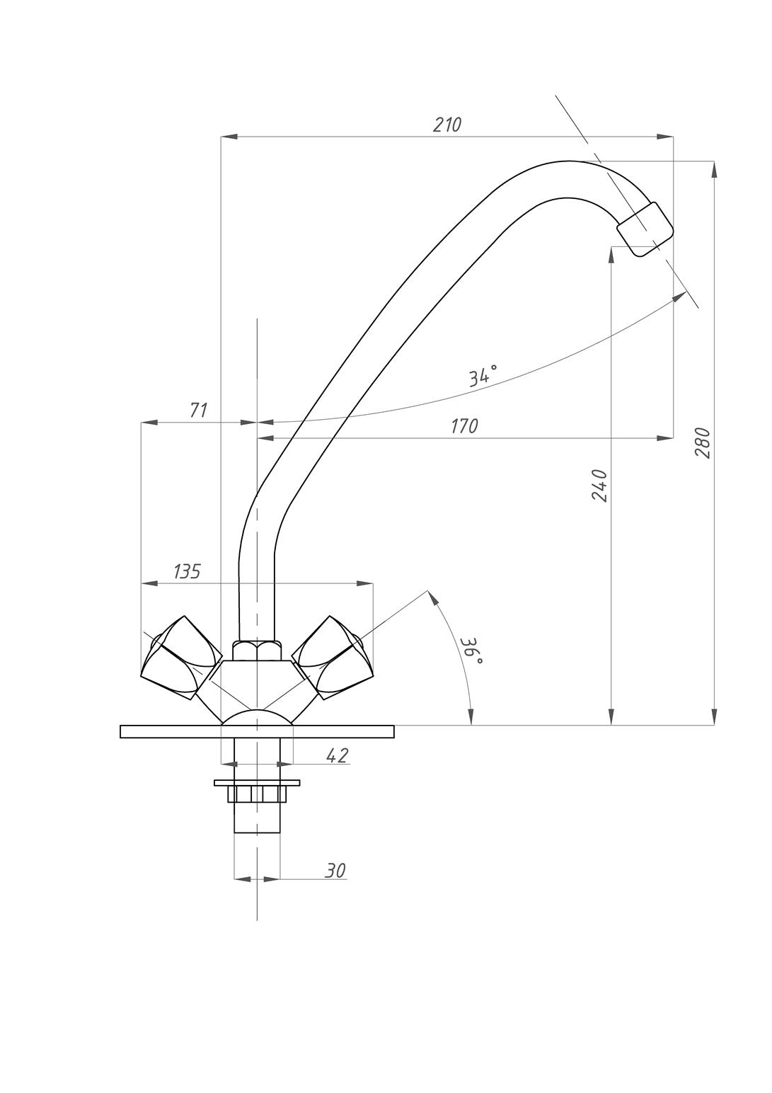 Высота смесителя, см