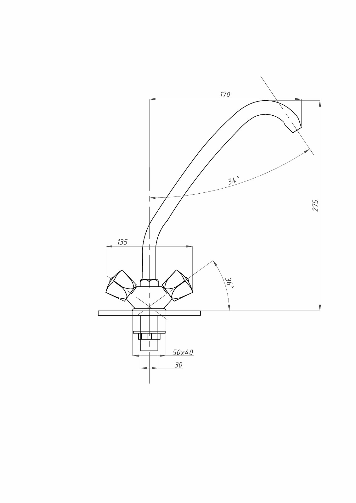 Высота смесителя, см
