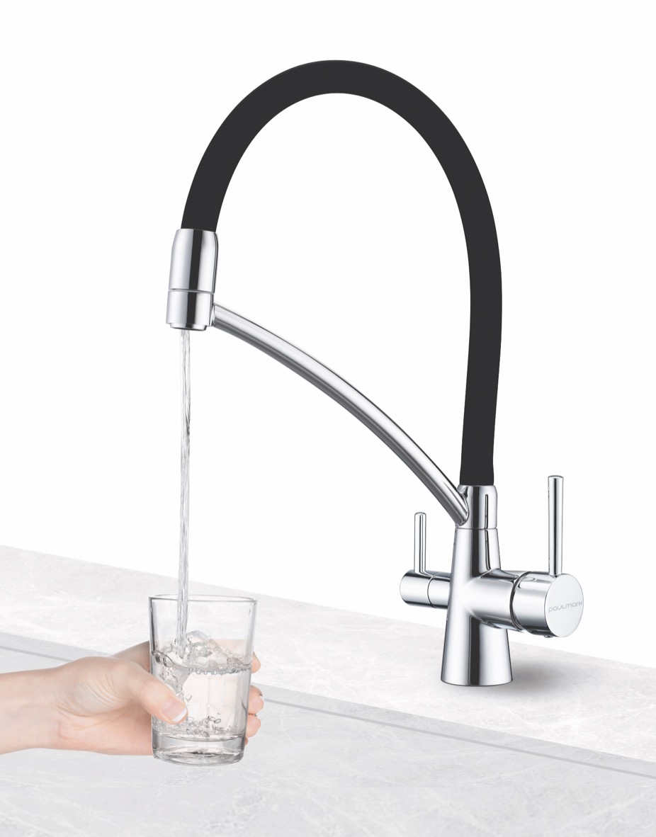 - Конструктивная технология Trinkwasser предусматривает поступление фильтрованной воды, которая не смешивается с водопроводной. Фильтрованная вода подается через отдельный канал, а для регулирования предусмотрена отдельная ручка.