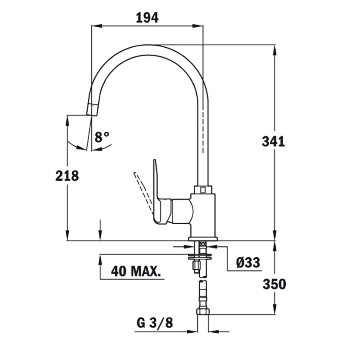 - Монтаж: на мойку (вертикальный)