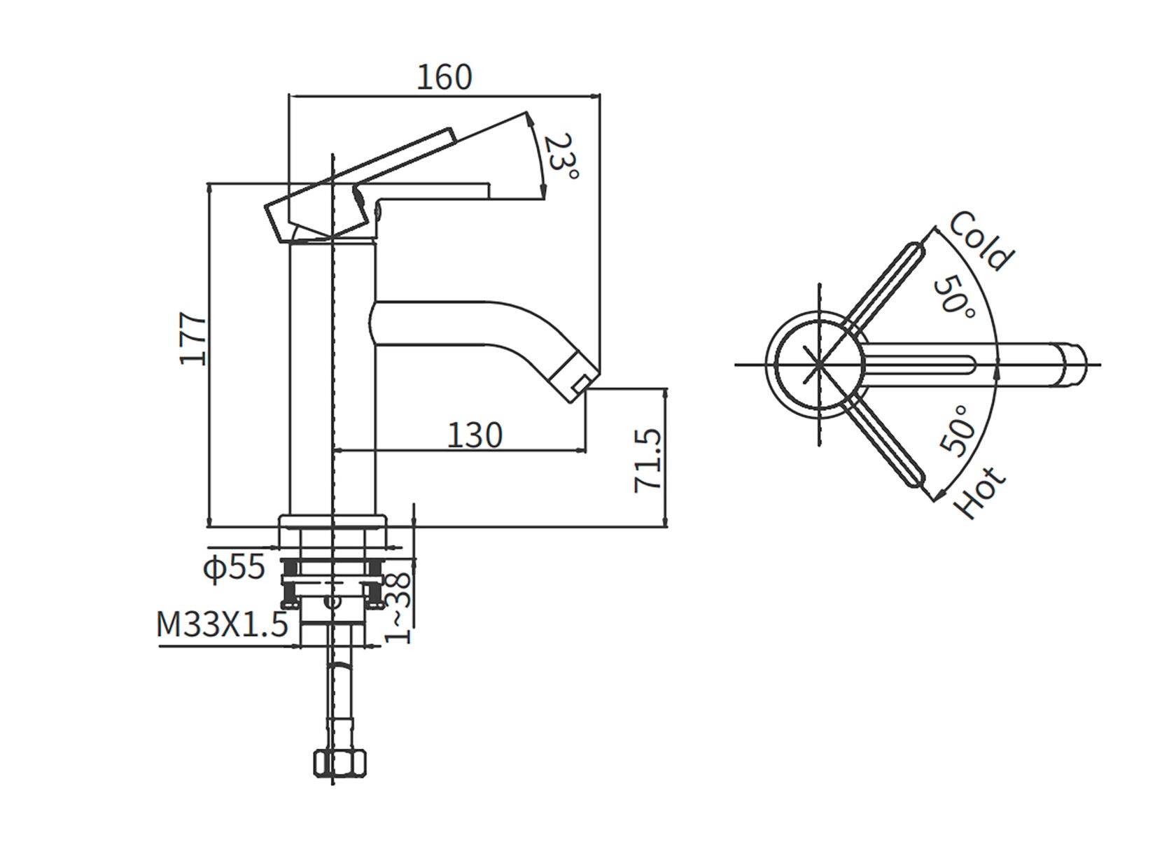 Высота смесителя, см