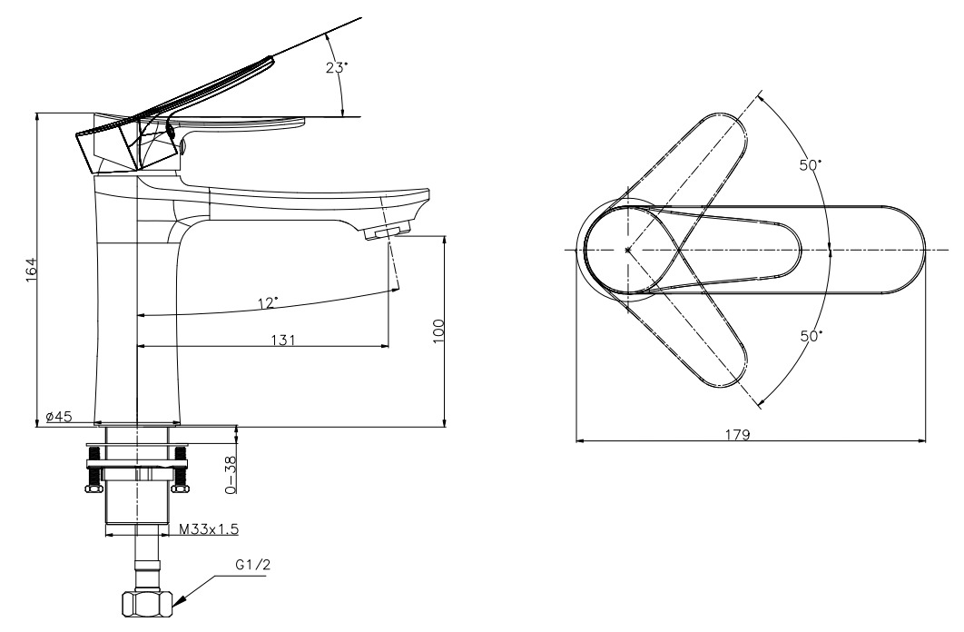 Высота смесителя, см