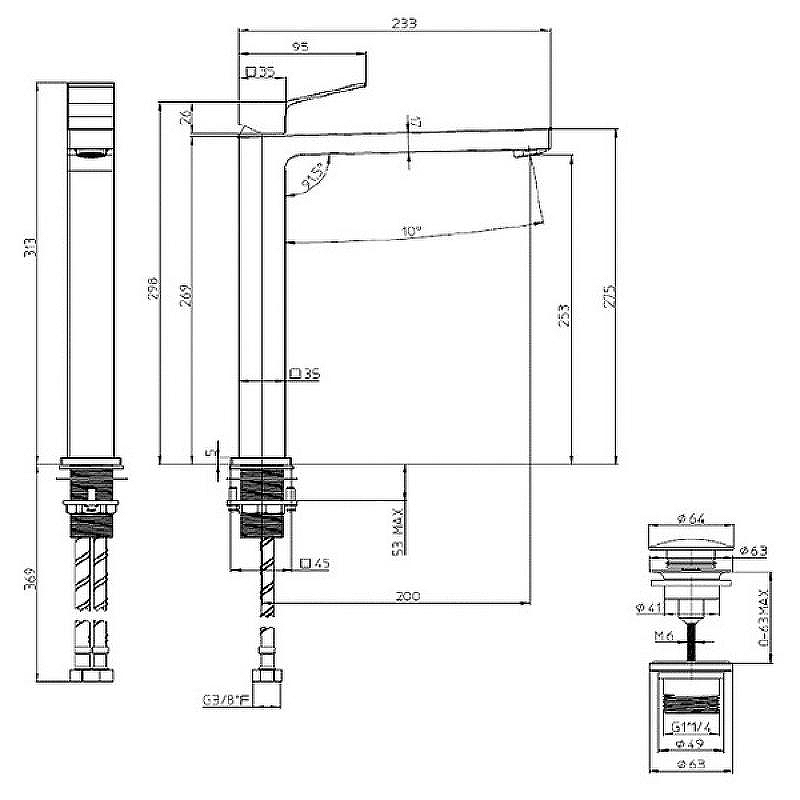 - Излив: фиксированный.