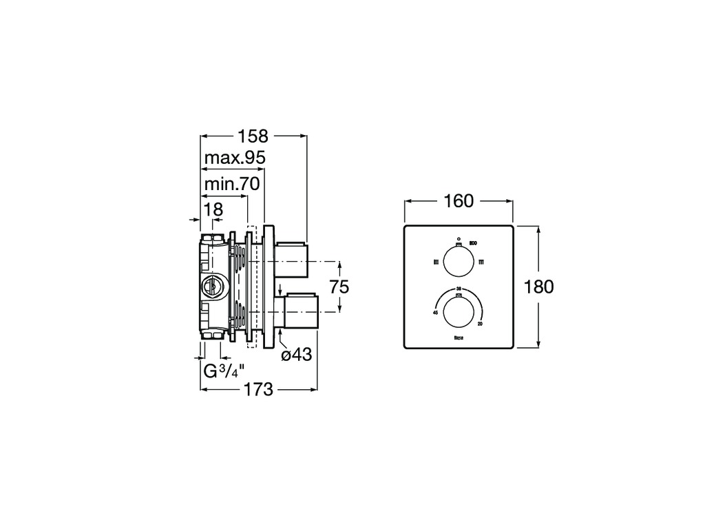 - подключение через RocaBox 3/4";