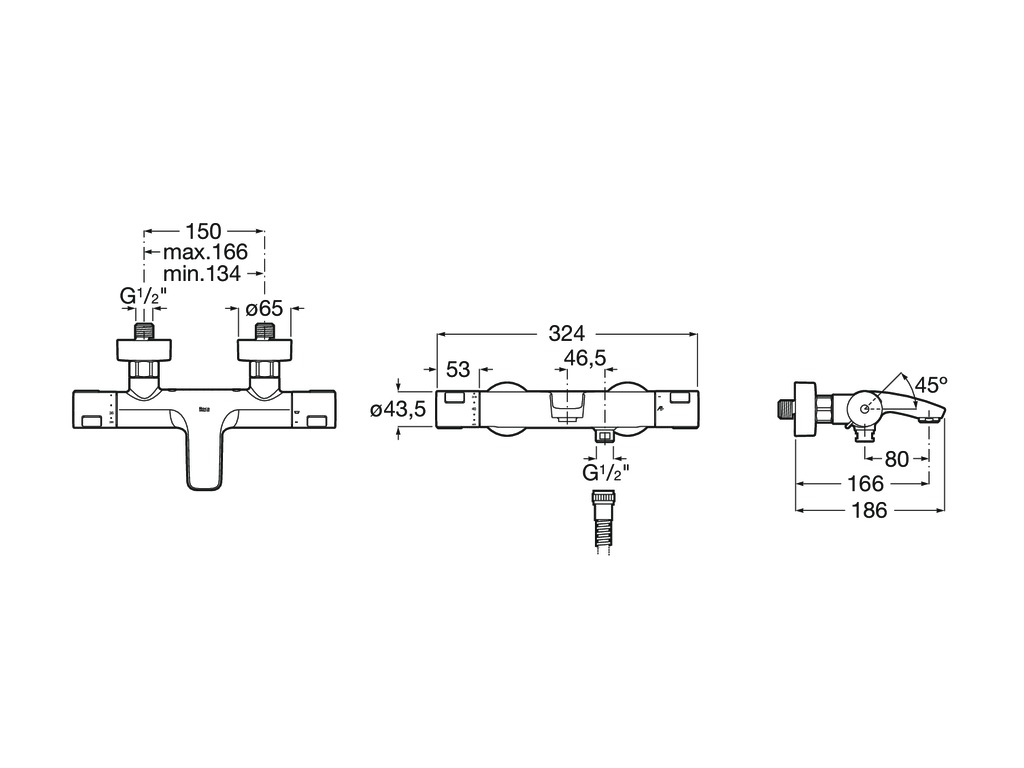 Горизонтальный, Настенный | Материал смесителя | Латунь |