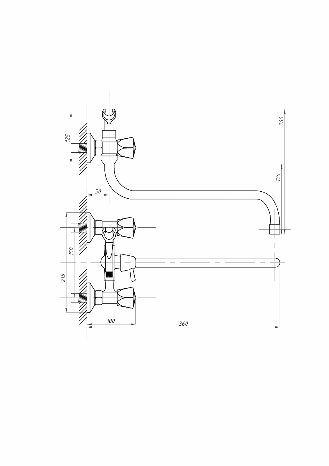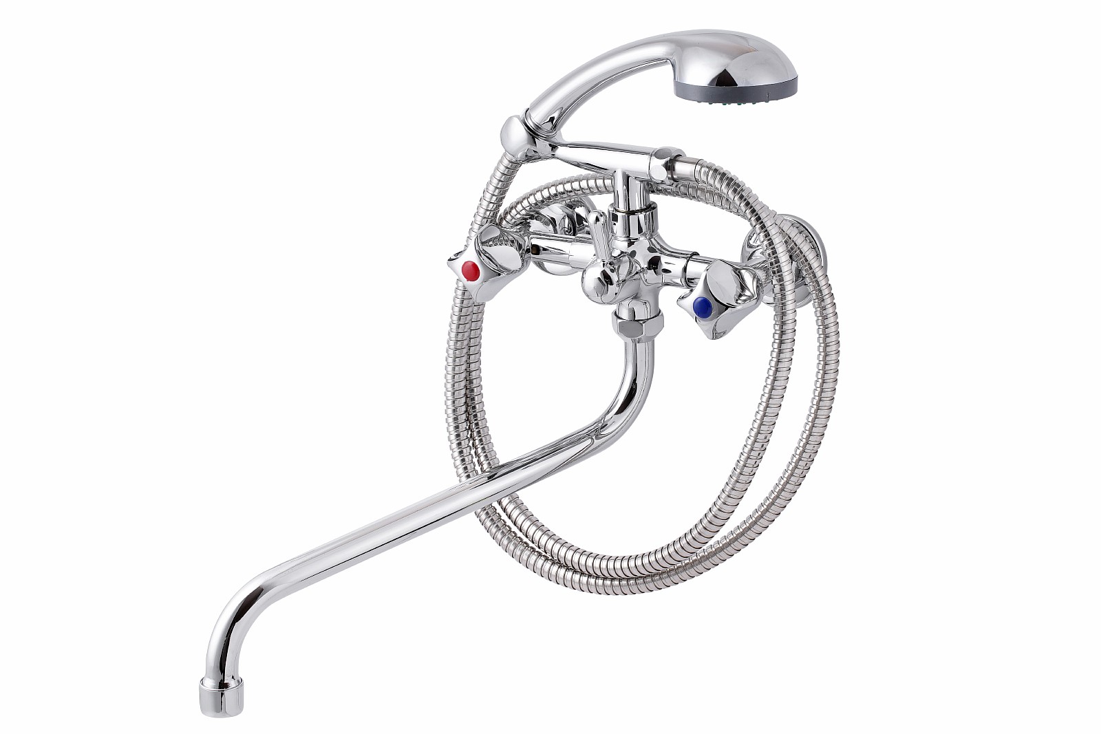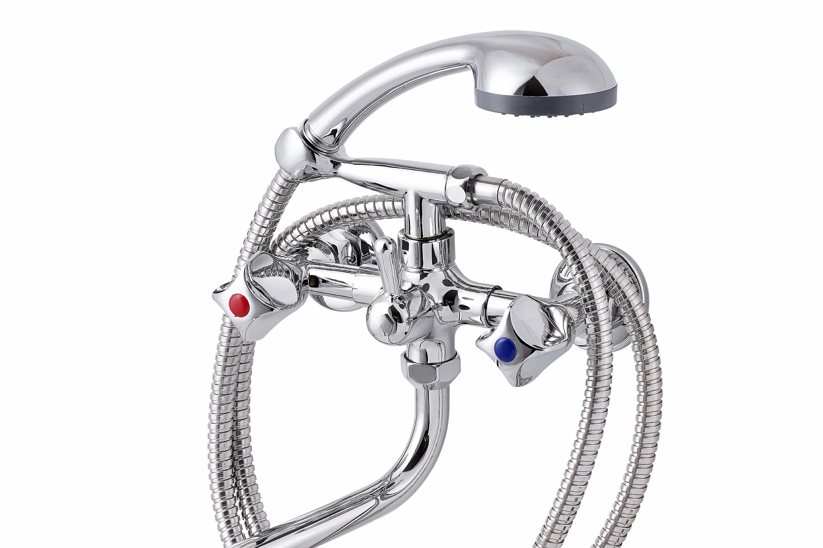 Смеситель, эксцентрики-2шт., декоративная шайба (отражатель)-2шт., шланг душевой, лейка душевая, держатель душевой лейки, паспорт.