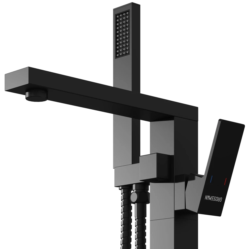 Смеситель напольный для ванны Falcon 530.K35.08.210  ТМ GROSSMAN в черном матовом исполнении с ручны душем и изливом - это идеальное сочетание высокого качества и доступной цены. Она подходит для установкина пол к отдельностоящим ваннам.