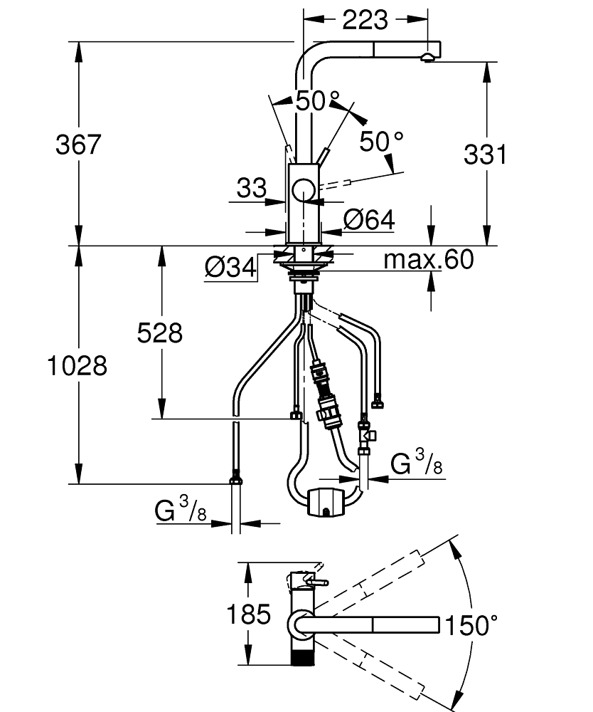 - GROHE Blue Смеситель однорычажный для мойки с функцией очистки водопроводной воды