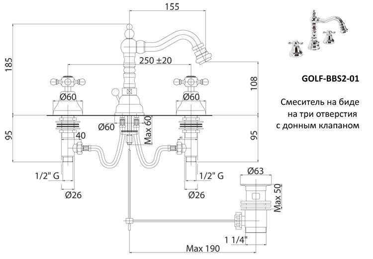 Донный клапан , С изливом | Конструкция смесителя | Длинные, Высокие |