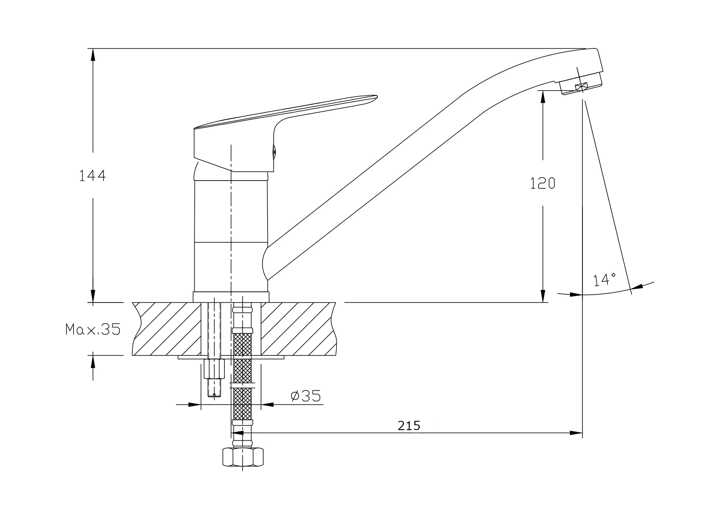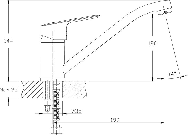 Объем поставки: смеситель для мойки, крепления, гибкая подводка (35 см), аэратор, фум-лента.