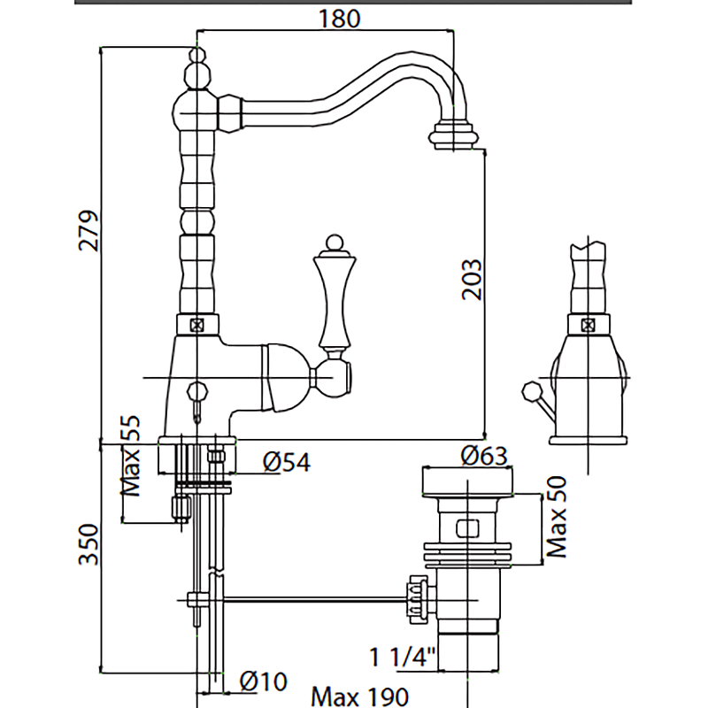 Донный клапан | Конструкция смесителя | Длинные, Высокие, Поворотные |