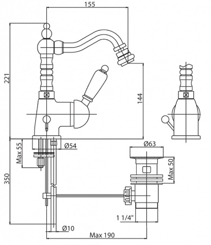 Донный клапан , Кристаллы Swarovski | Конструкция смесителя | Поворотные |