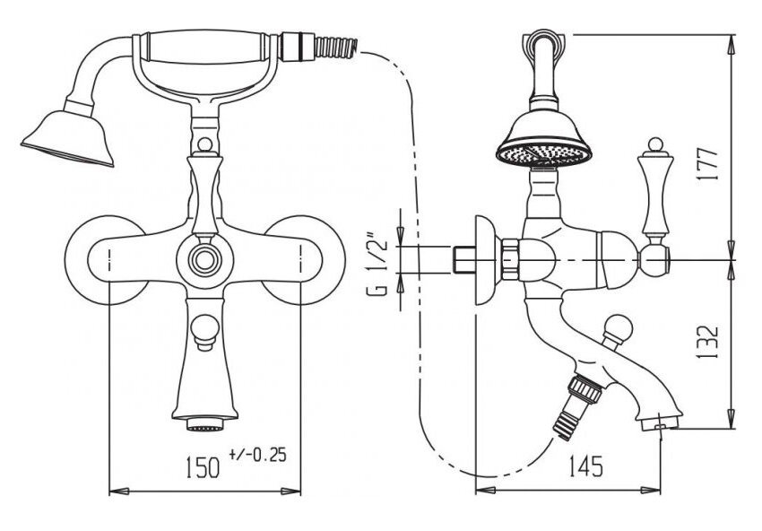 - Оснащение аэратор, держатель для душевой лейки, дивертор, душевая лейка, душевой шланг, эксцентрики