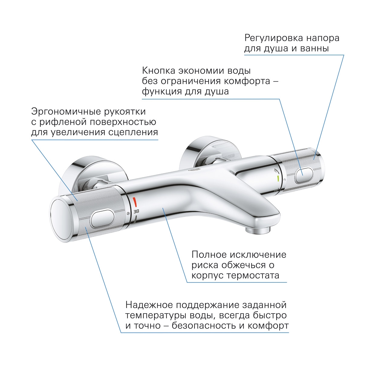 - - GROHE EcoButton (встроенная кнопка с функцией экономии воды для душа)