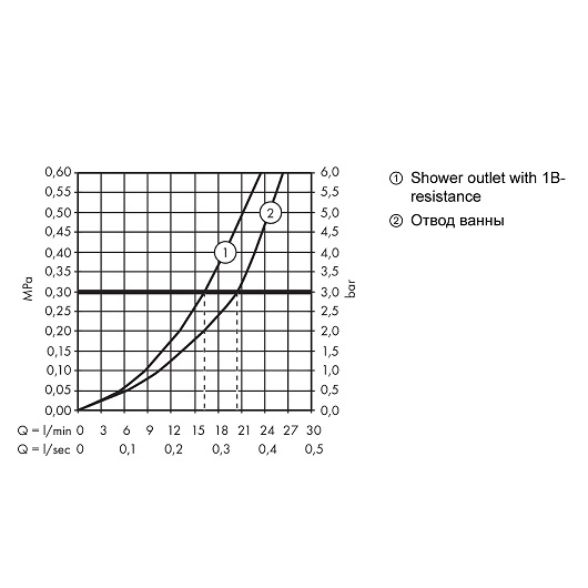 - Расход воды ручных душем при 3 барах: 17 л/мин