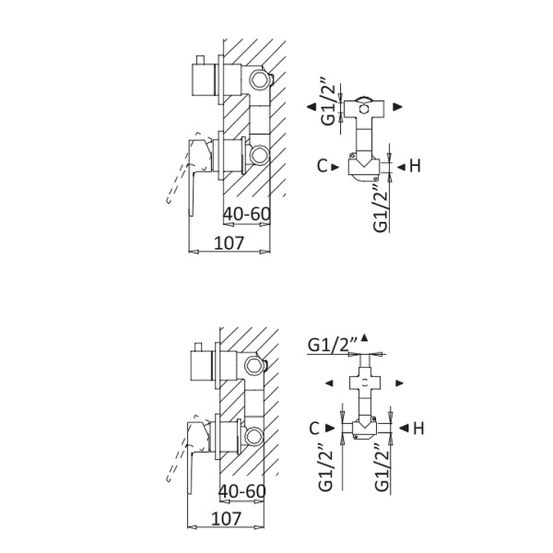 - Тип подводки: внутренний (скрытый) монтаж ½"
