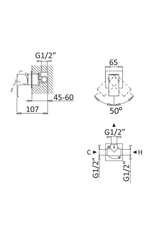 - Тип подводки: внутренний (скрытый) монтаж ½"