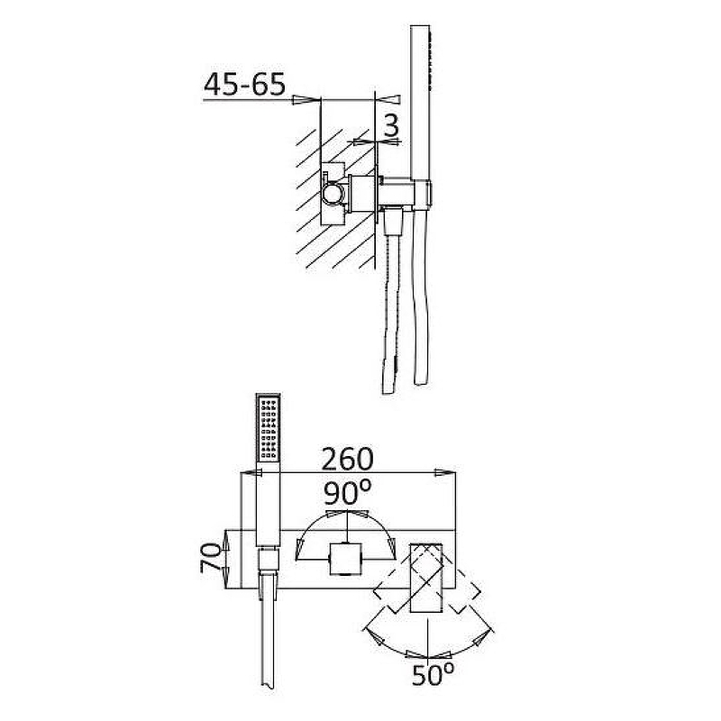 - Встраиваемый смеситель для ванны и душа однорычажный, на 3 выхода, в комплекте с ручным душем хром
