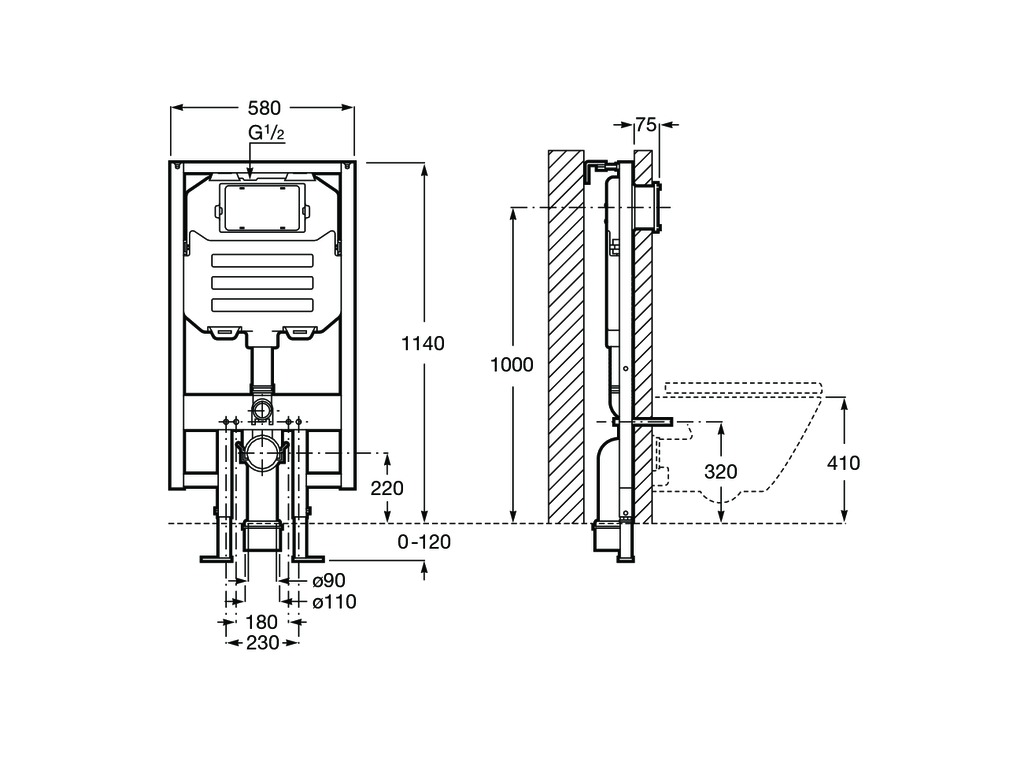 DUPLO WC COMPACT — скрытая инсталляционная система с компактным бачком (8 см) и двойной системой смыва (4/2 - 4.5/3 - 6/3 L). Диаметр патрубка 90/110