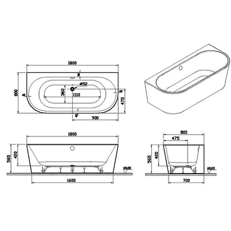 - Расположение слива: по центру.