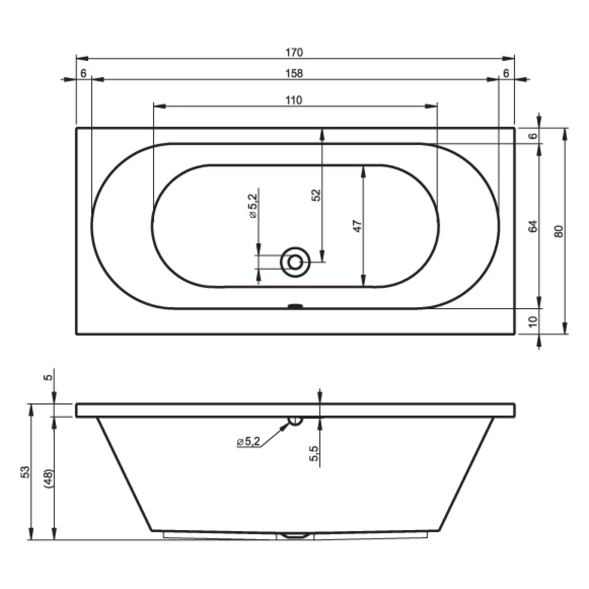 - Диаметр слива, см 5.2