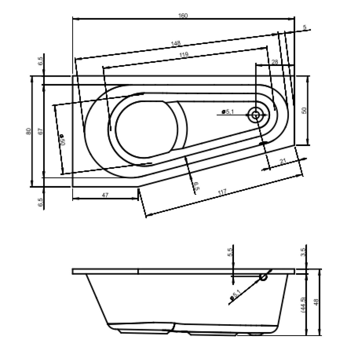 - Диаметр слива, см 5.2