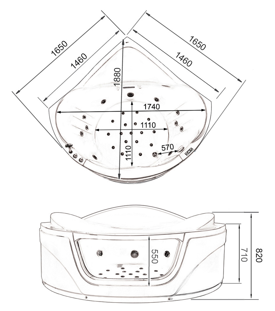Электронное | Кол-во форсунок гидромассажа | 10 |
