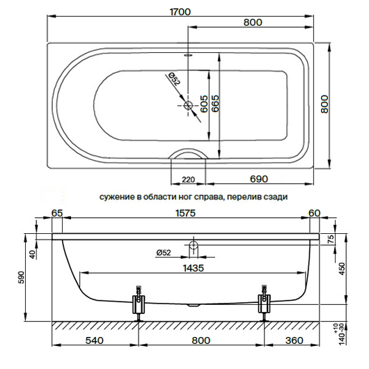 - Диаметр слива, см 5.2