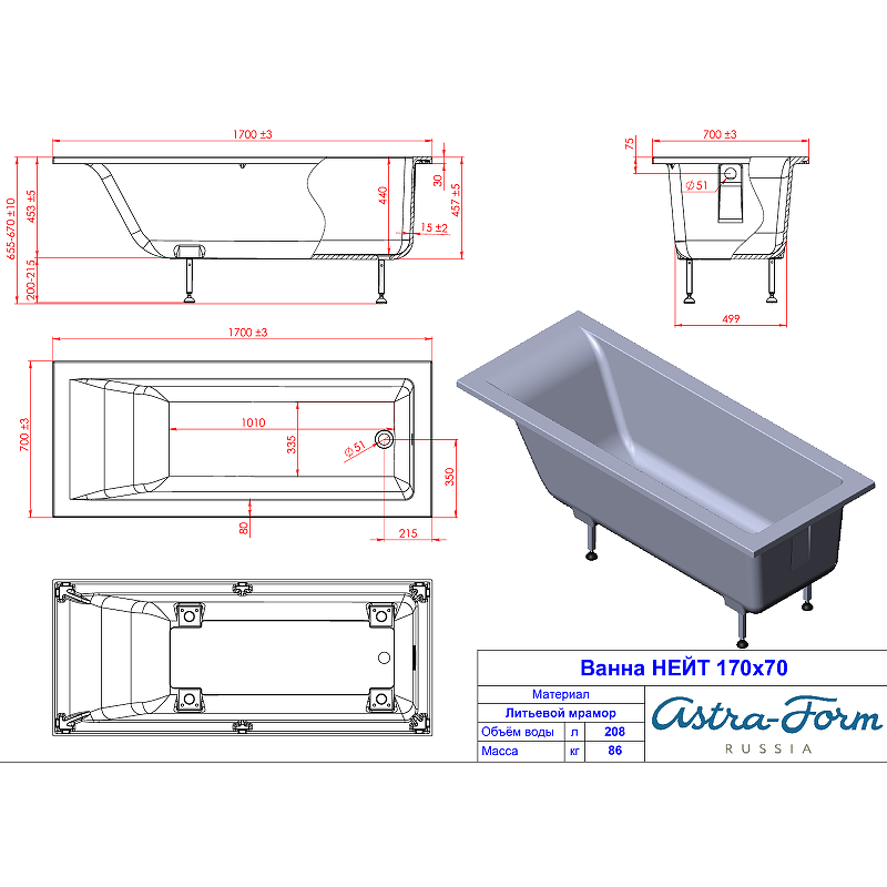 Экран большой 170x70 Astra Form Нейт/Вега 02010009 |