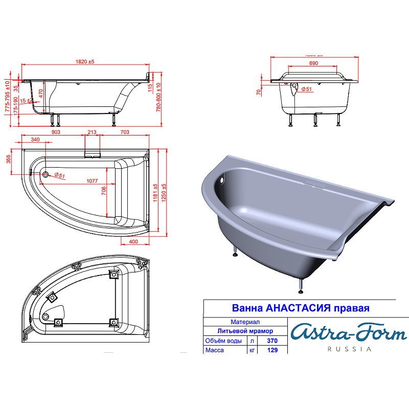 125 | Объем, л | 370 |