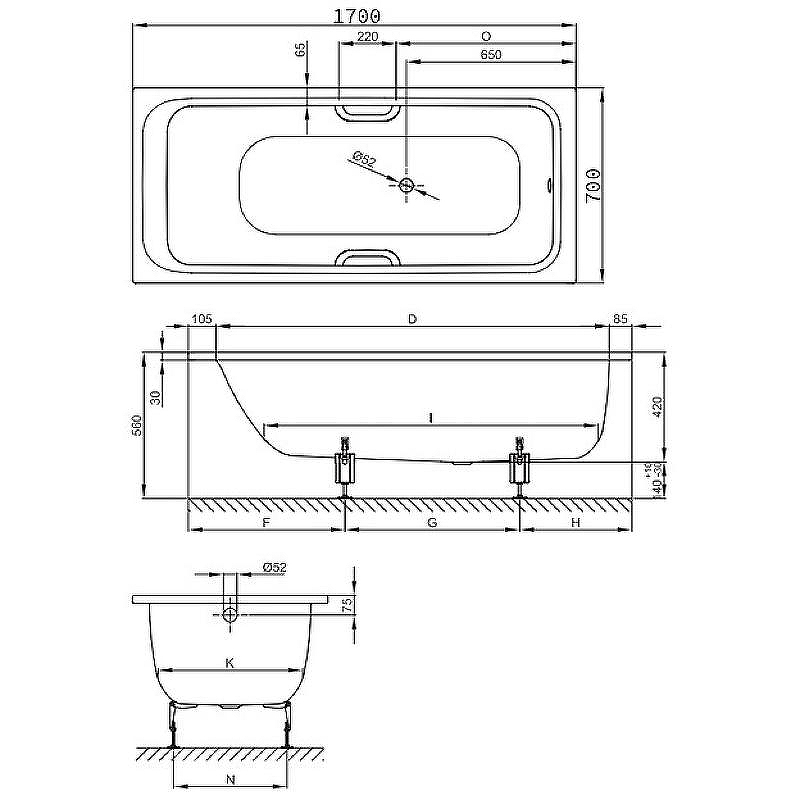 - Размер чаши ванны (ШхВхД): 700х420х1700 мм.