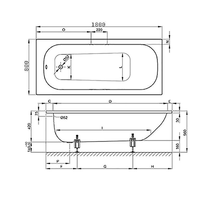- Размер чаши ванны (ШхВхД): 800х420х1900мм.