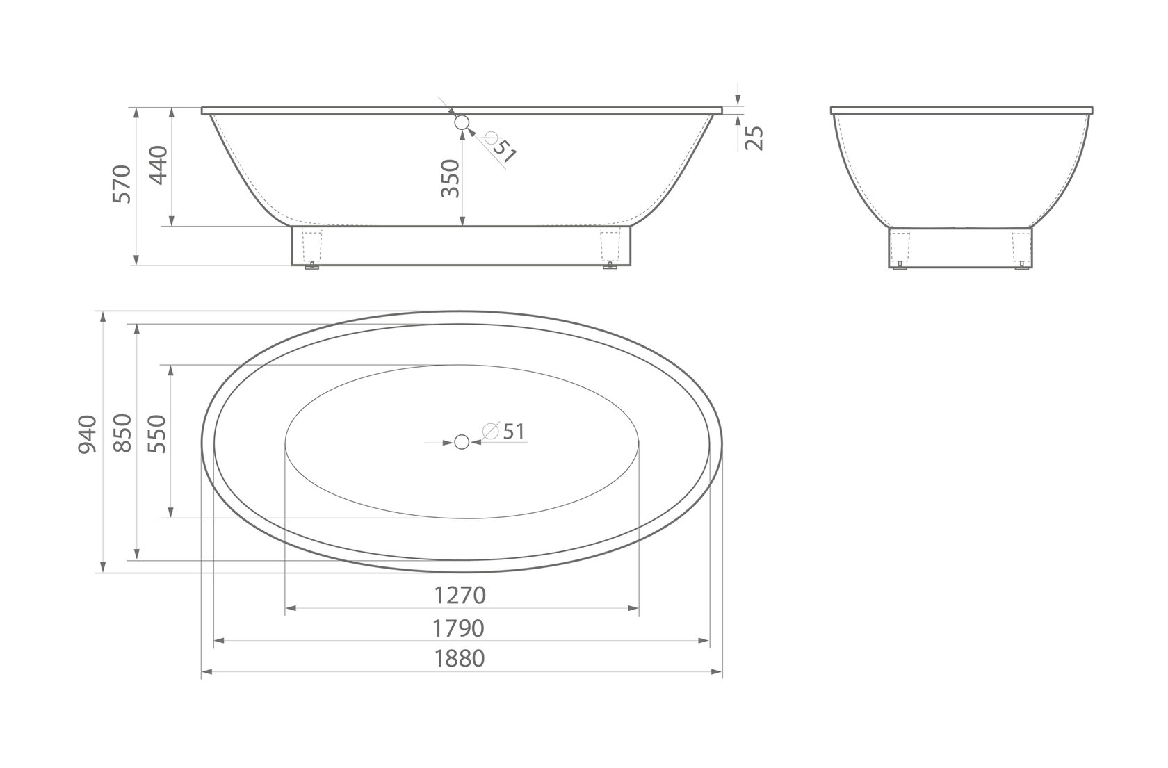 - Ванна из искусственного камня Aquastone Кантри 188x94 приставная, овальной формы.