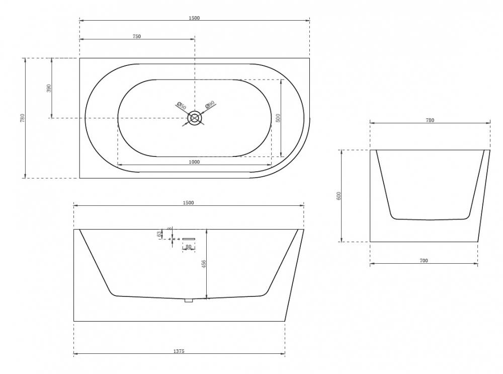 - Ванна акриловая встраиваемая/приставная