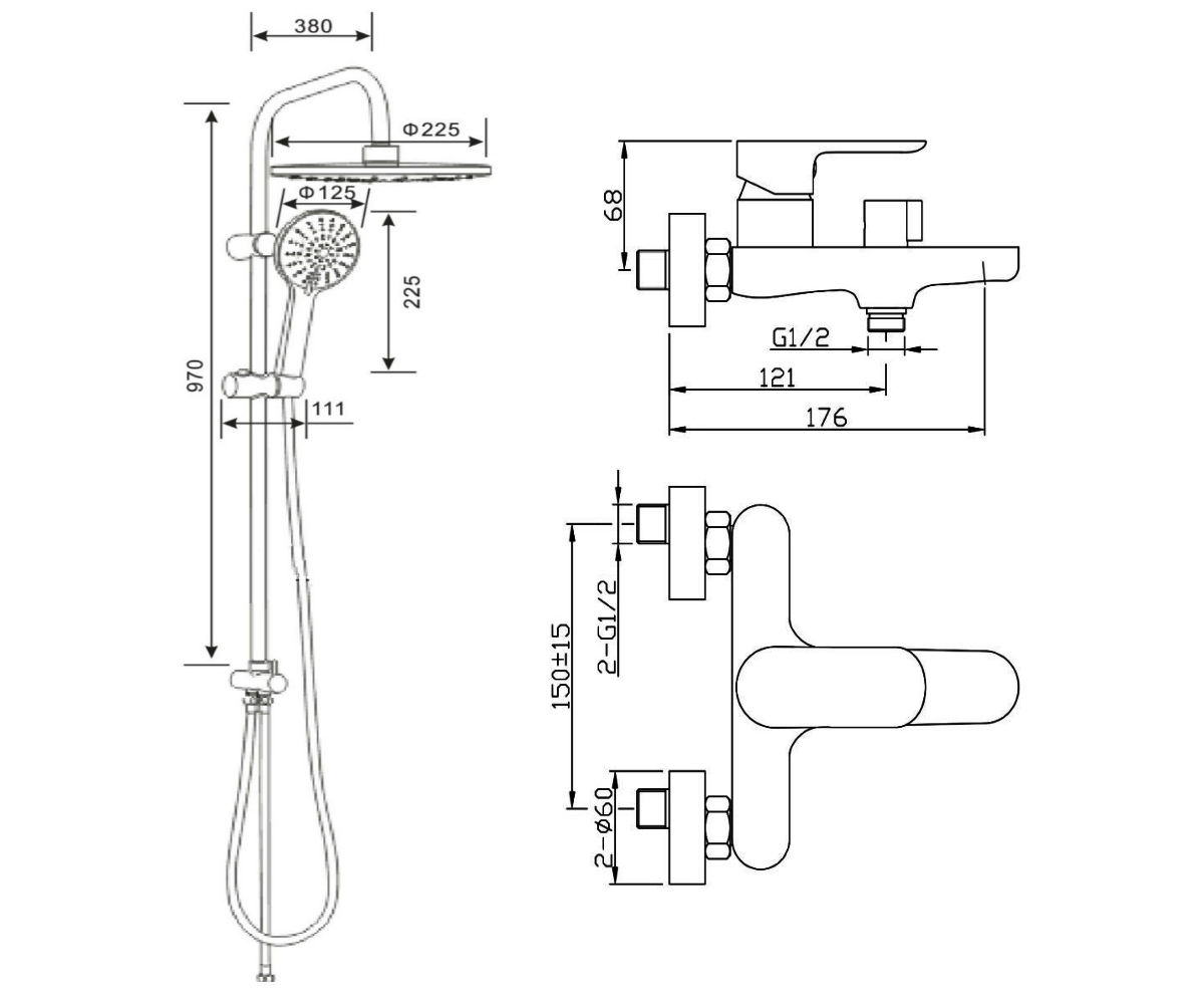 150 | Диаметр верхнего душа, см | 22.5 |