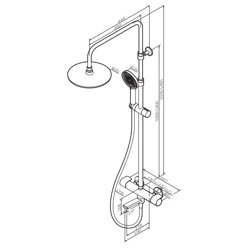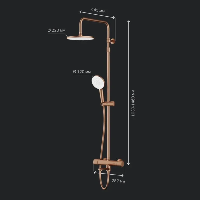 - Высота душевой штанги: 1030-1460 мм.