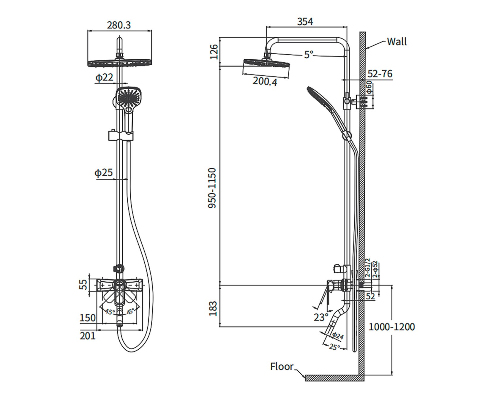 - Диаметр верхнего душа: 280*200 мм