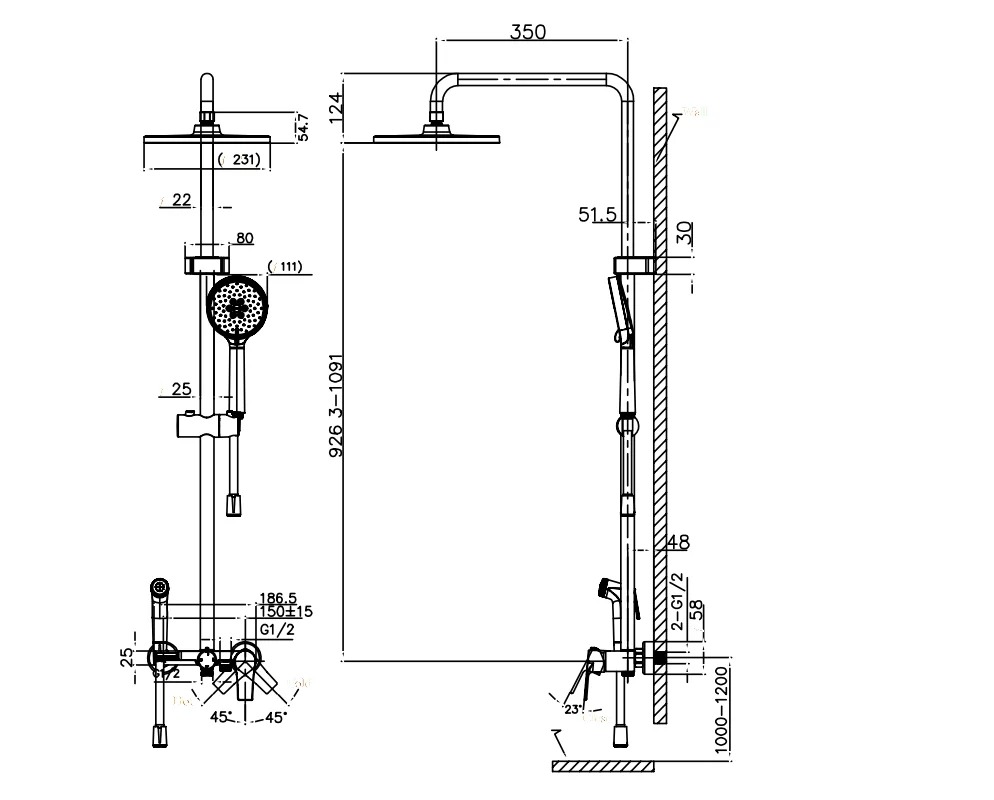 - Размер верхнего душа: 231 мм