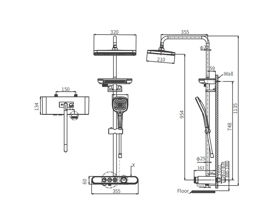 150 | Диаметр верхнего душа, см | 25 |