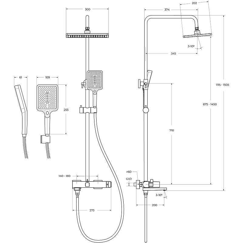 - Душевой шланг из ПВХ длиной 1500 мм.
