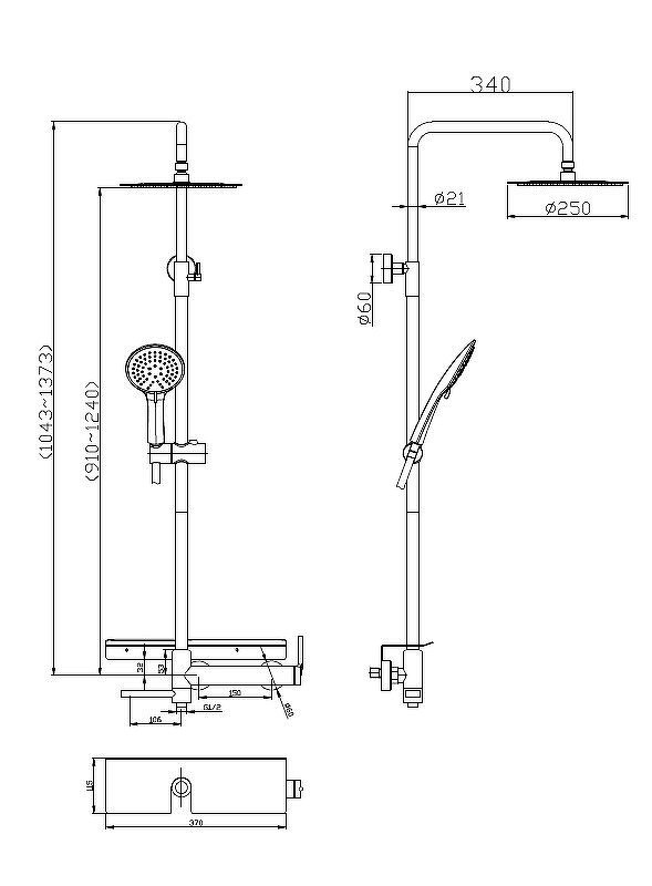 - В комплекте поставки: смеситель, душевая штанга, верхний душ, ручной душ, душевой шланг, крепления.