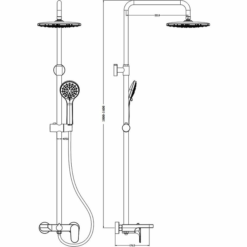 - Регулируемая по высоте телескопическая штанга: 1000-1400 мм.