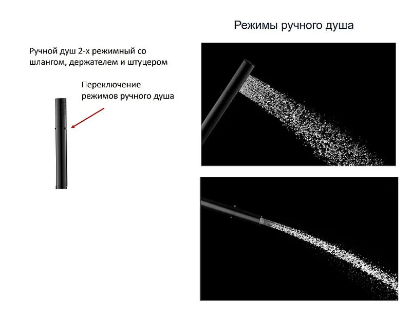 - Душевая лейка: 2 режима