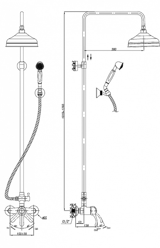 - Форма верхнего душа: круглая.