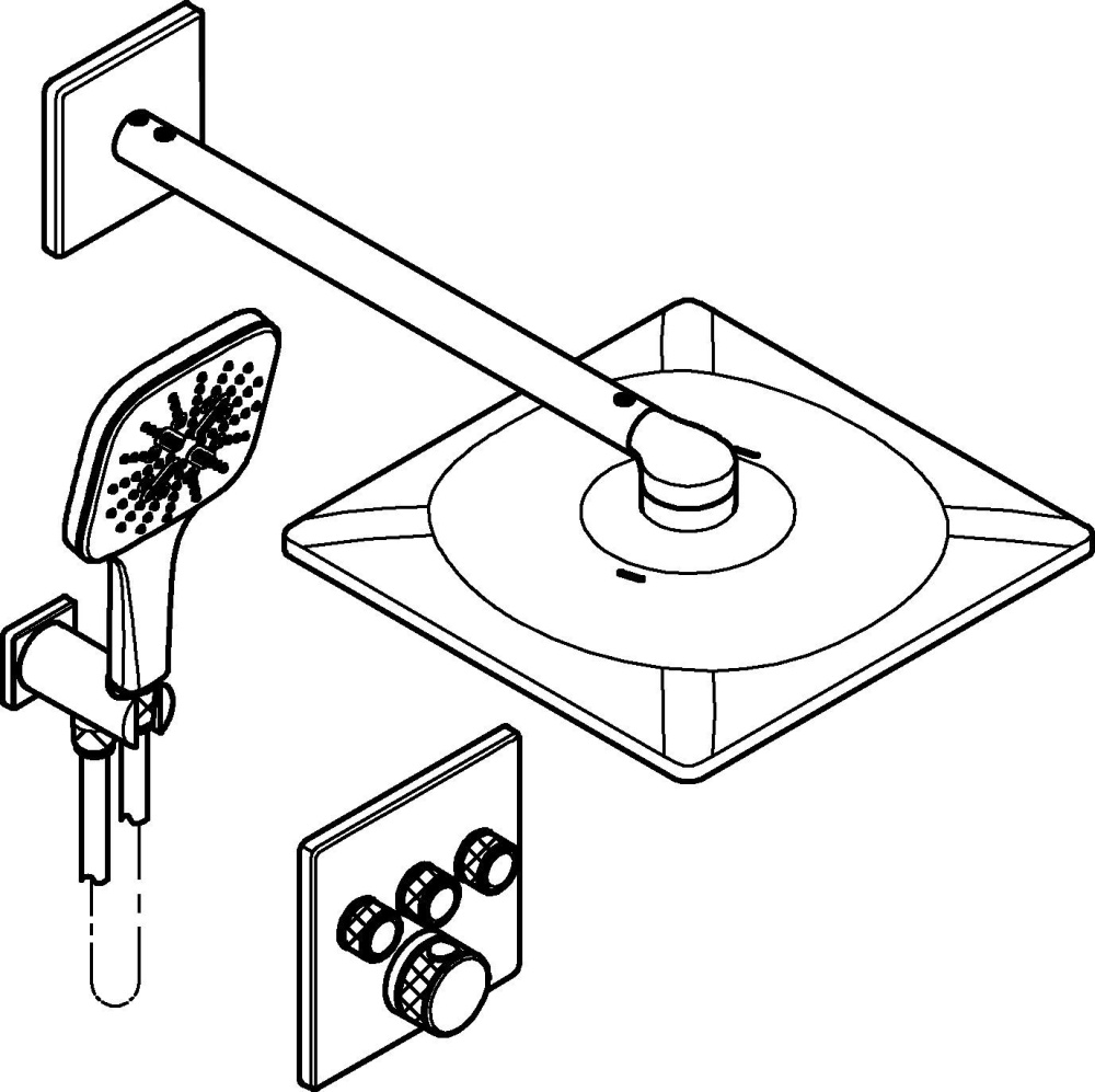 - Верхний душ Rainshower SmartActive 310 Cube с 2 режимами струи (26 479), настенный душевой кронштейн 430 мм и универсальная встраиваемая часть (26 483)