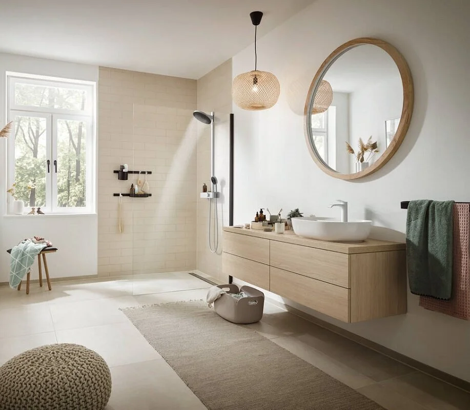 - Состоит из: верхний душ, ручной душ, термостат для душа, душевая штанга, штанга для душа