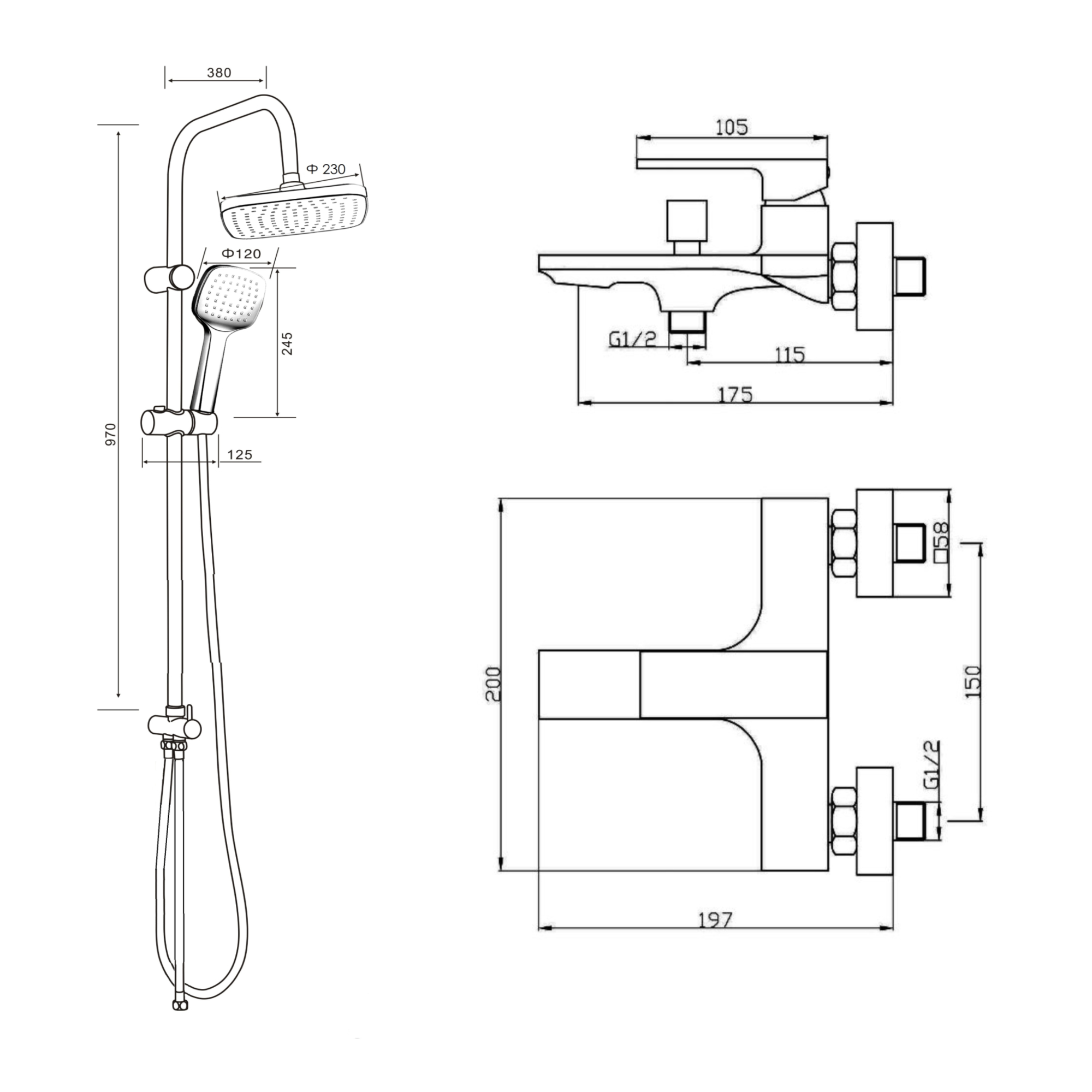 150 | Диаметр верхнего душа, см | 23 |