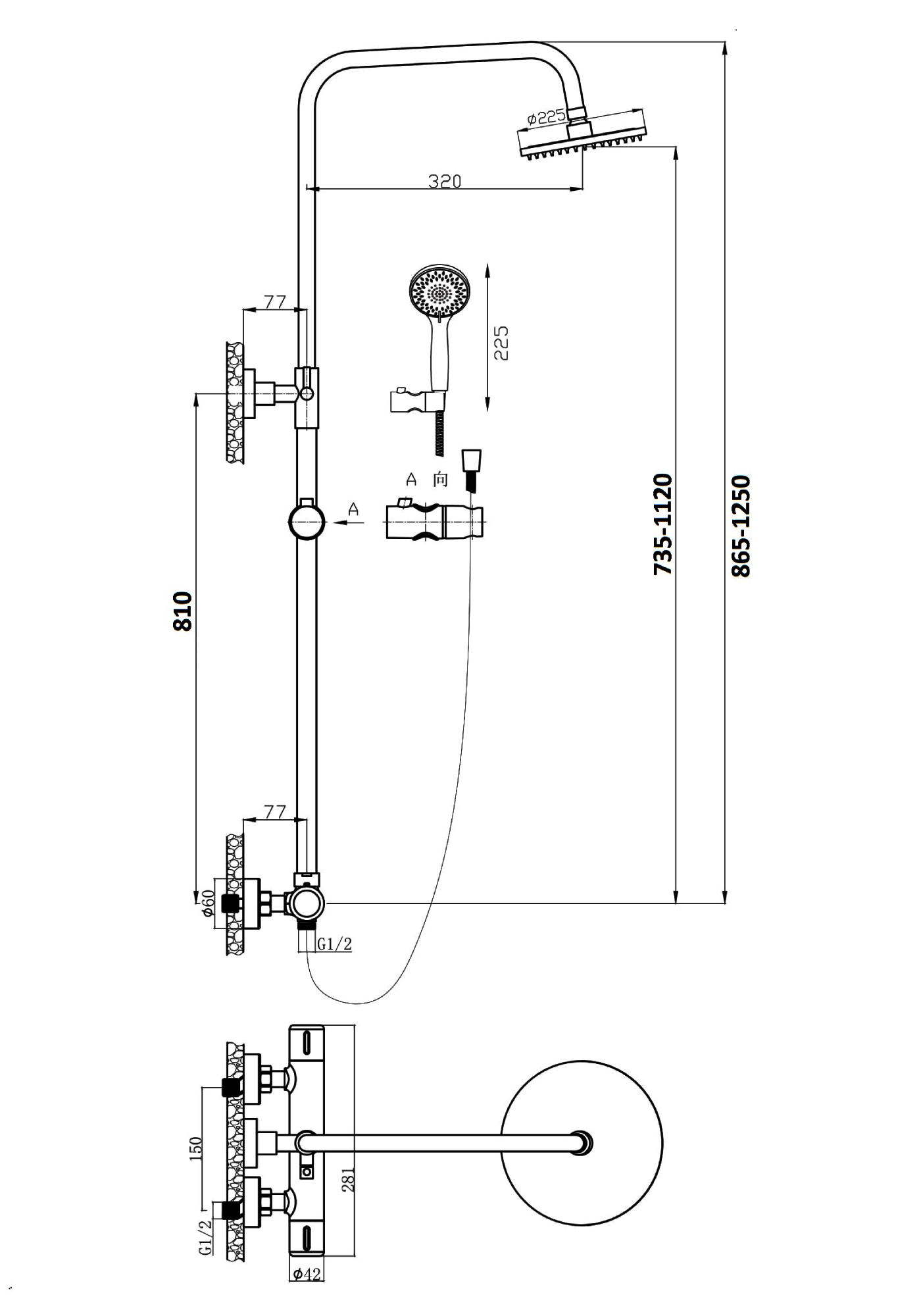 150 | Диаметр верхнего душа, см | 22.5 |