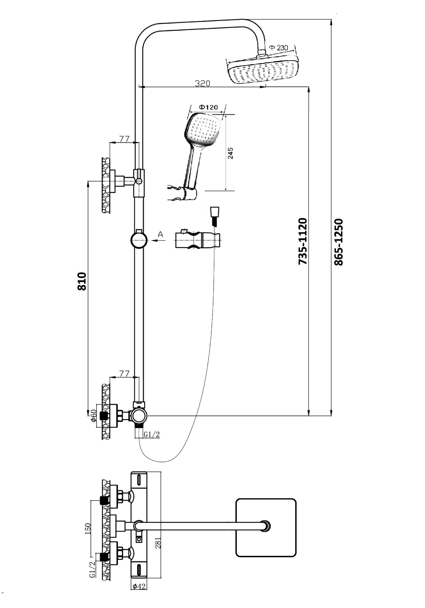 150 | Диаметр верхнего душа, см | 23 |