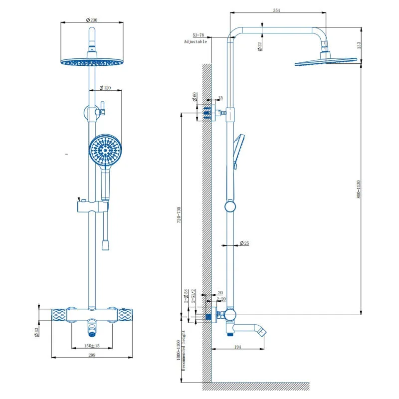 150 | Диаметр верхнего душа, см | 22,6 |